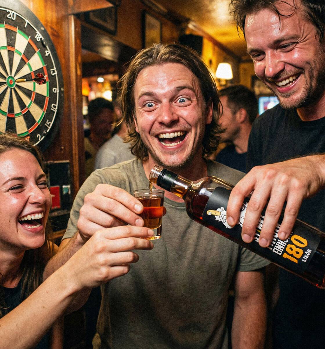 Wenn bei euch „180!“ fällt, muss der passende Shot stehen. Stinkefingereinhorn 180 ist DER Schnaps für Darts-Spieler: frech, partybereit und geschmacklich wie eine kleine Triple-Attacke aus Whisky–Cola–Rum.