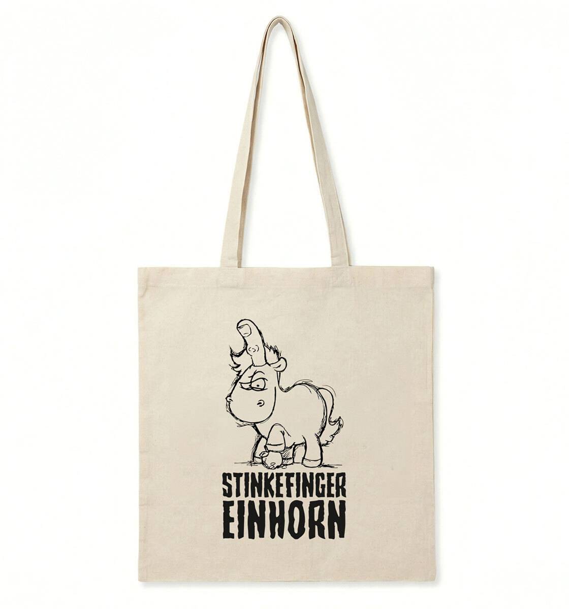 Die naturfarbene Stofftasche mit Stinkefingereinhorn Print passt im Alltag genauso wie beim Einkauf, auf dem Festival, unterwegs in der Stadt oder als kleines Geschenk mit mehr Charakter als der übliche Standardkram.